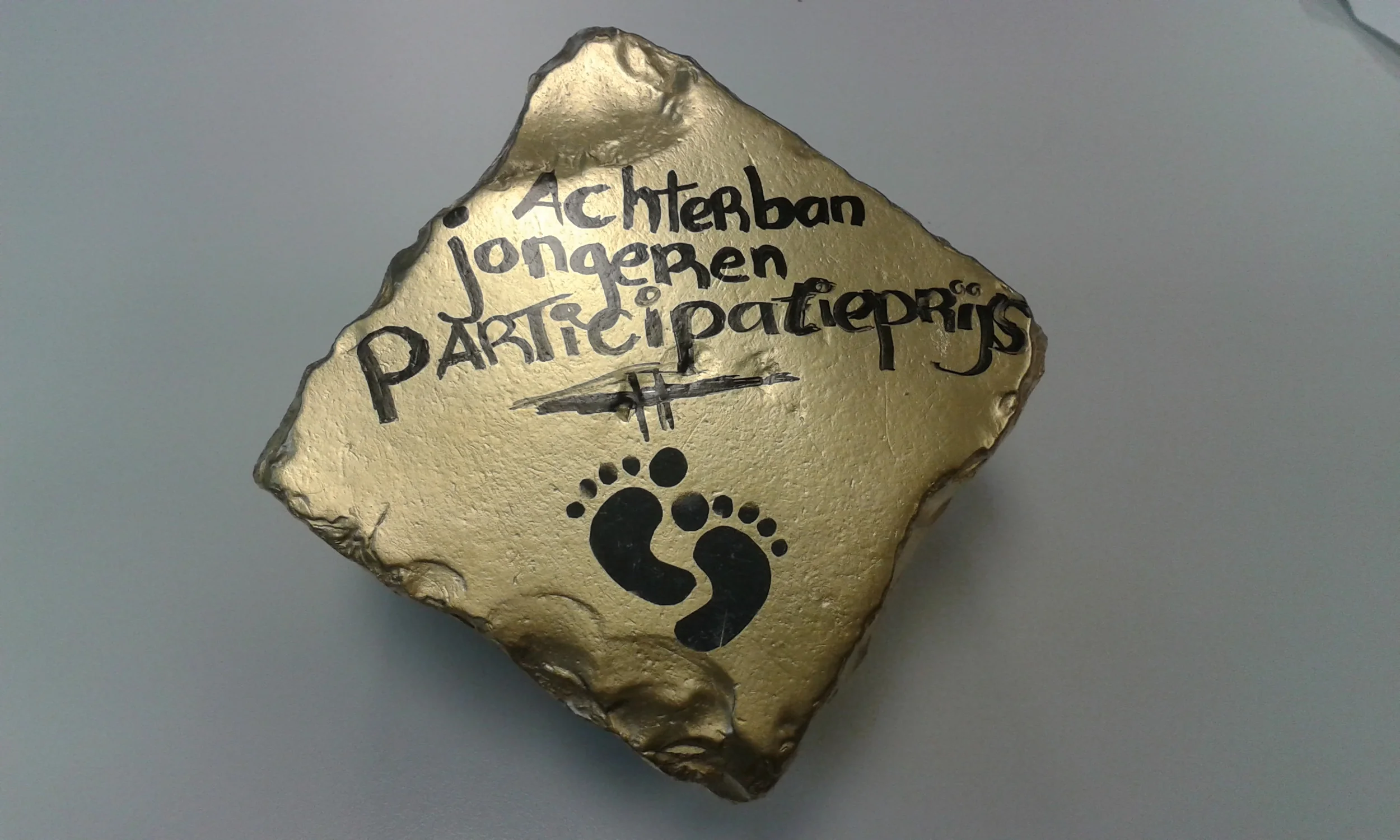 De Achterban jongeren stond nog in de kinderschoenen en Fietje kreeg er al lucht van. We werden gelijk uitgenodigd voor de studiemiddagzwerfjongeren, waar we een podium kregen om iets over onszelf te vertellen. Jij liet een dienblad rondgaan, waar iedereen een visitekaartje op kon leggen en ons netwerk was compleet. We hadden een plek in de keten! De jaren daarop zaten we in de organisatie van de studiemiddag. Afgelopen 5 jaar heb je de Achterban jongeren op verschillende manieren betrokken en waarom?... omdat de stem van jongeren voor jou belangrijk is. We besparen je de opsomming van alle successen die we door jou gemaakt hebben (hebben we geen tijd voor) en willen je de Jongeren participatieprijs overhandigen. Bedankt!